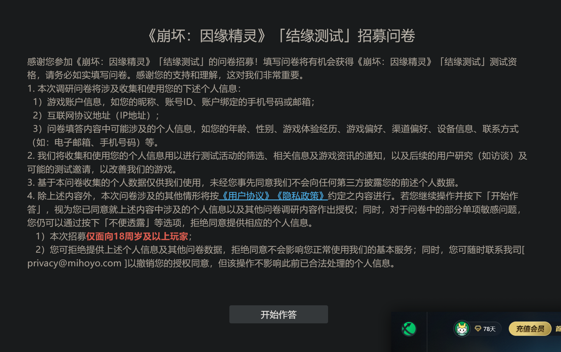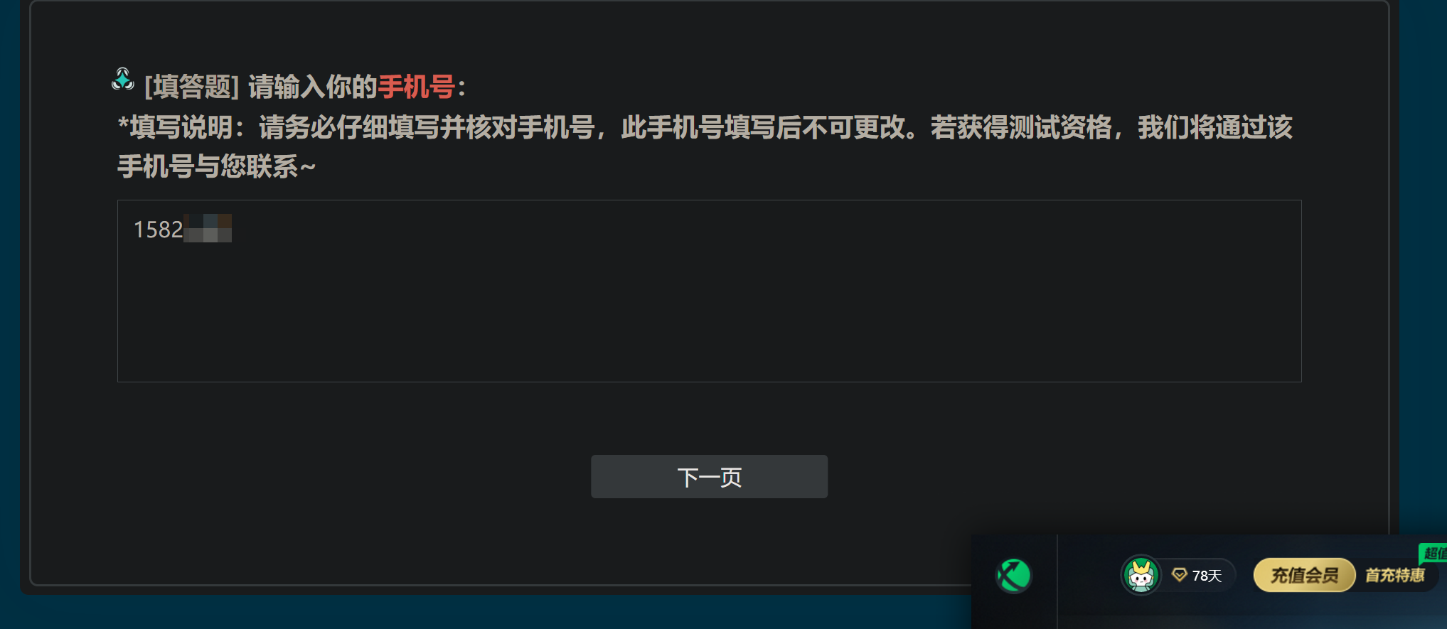 然后就根据自身情况开始填写问卷,但大家可以更偏向与把自己营造成一个资深游戏玩家来增加获得测试资格的几率