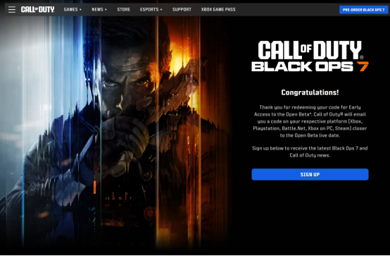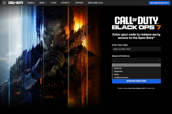 1.进入兑换页面,链接: https://profile.callofduty.com/promotions/redeemCode/beta-partner ,登录您的动视账号