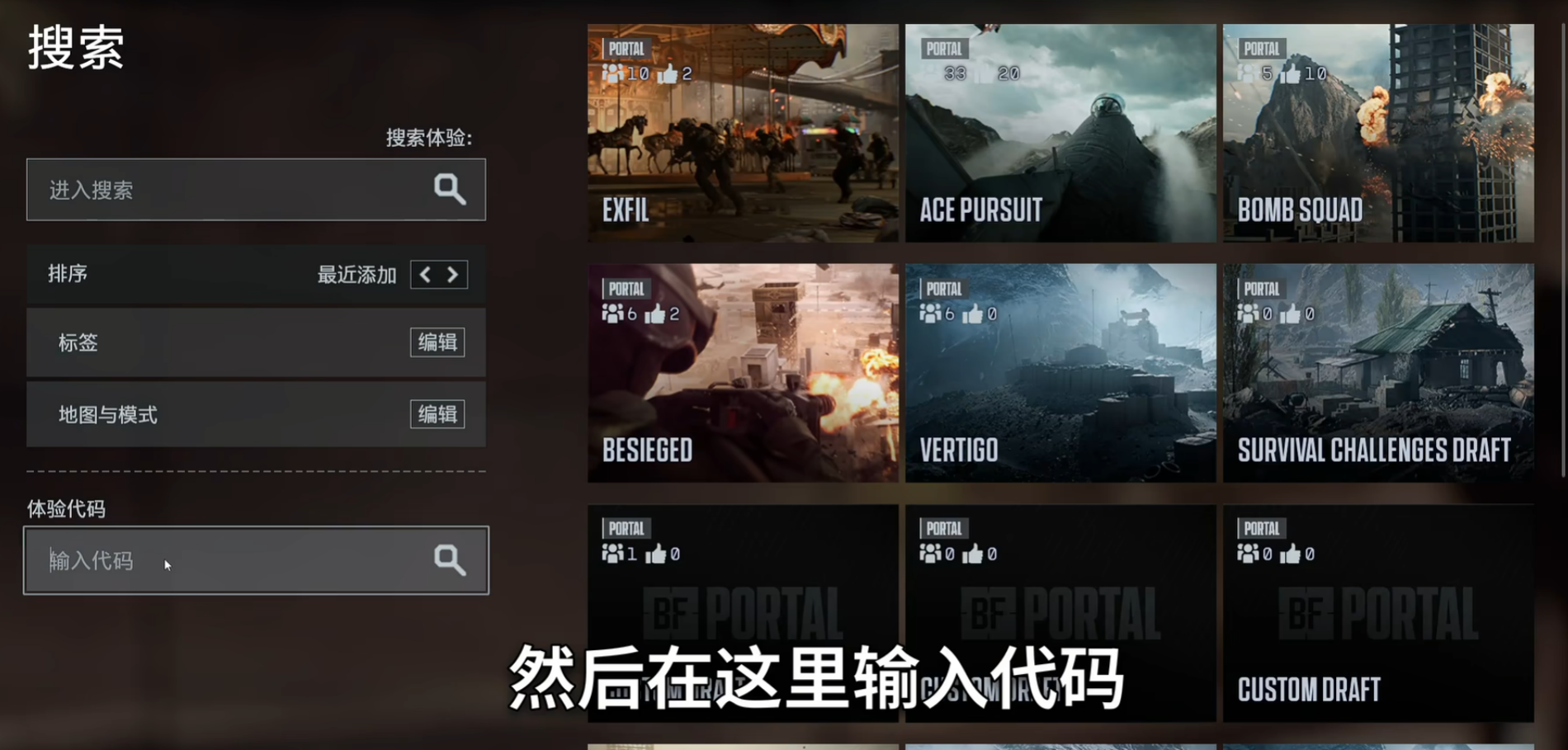 然后输入想要游玩的刷枪服的体验代码,并点击进入搜索出的服务器