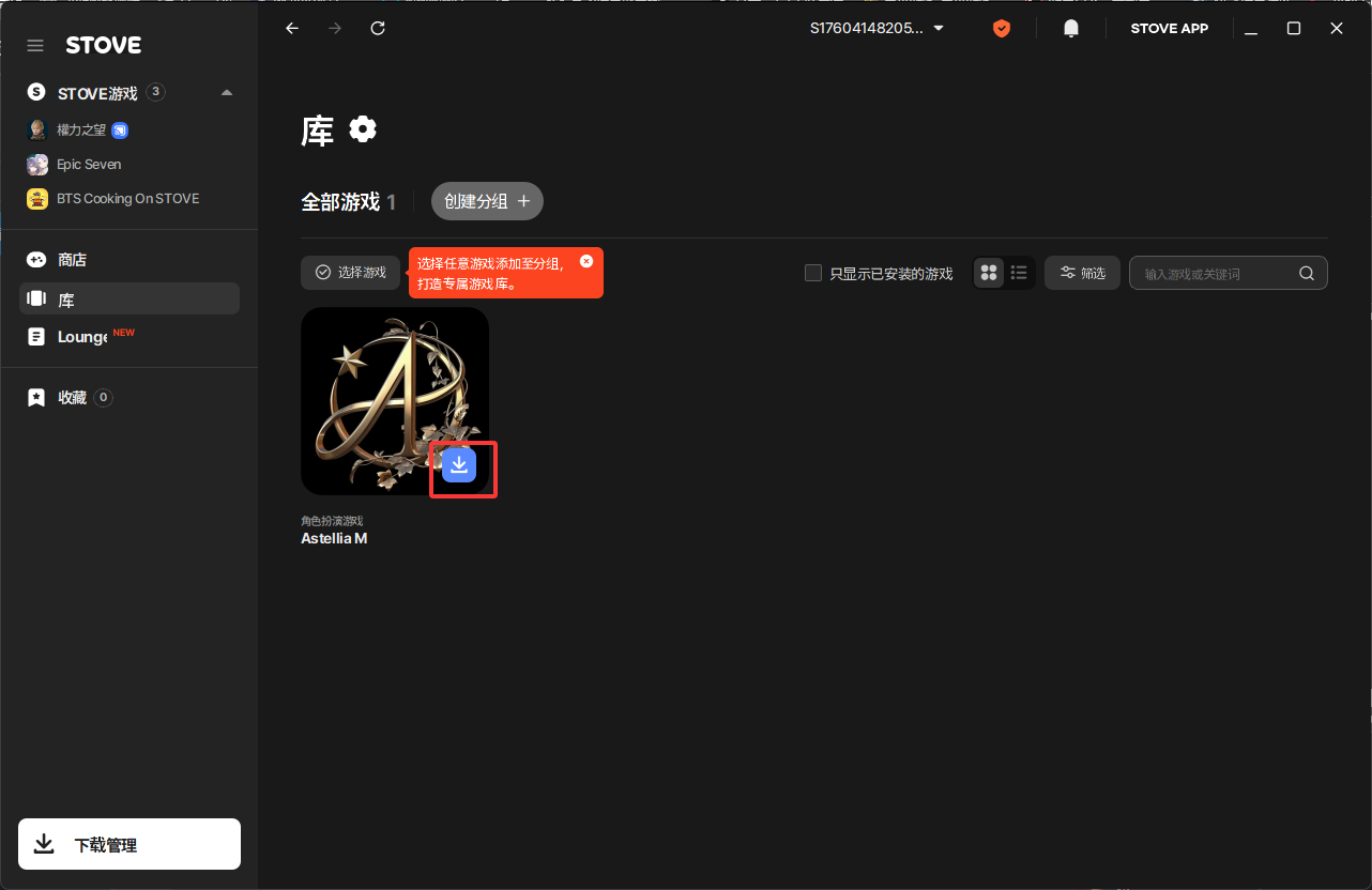 14.打开stove客户端,登录账号,进入“库”,点击下载按钮