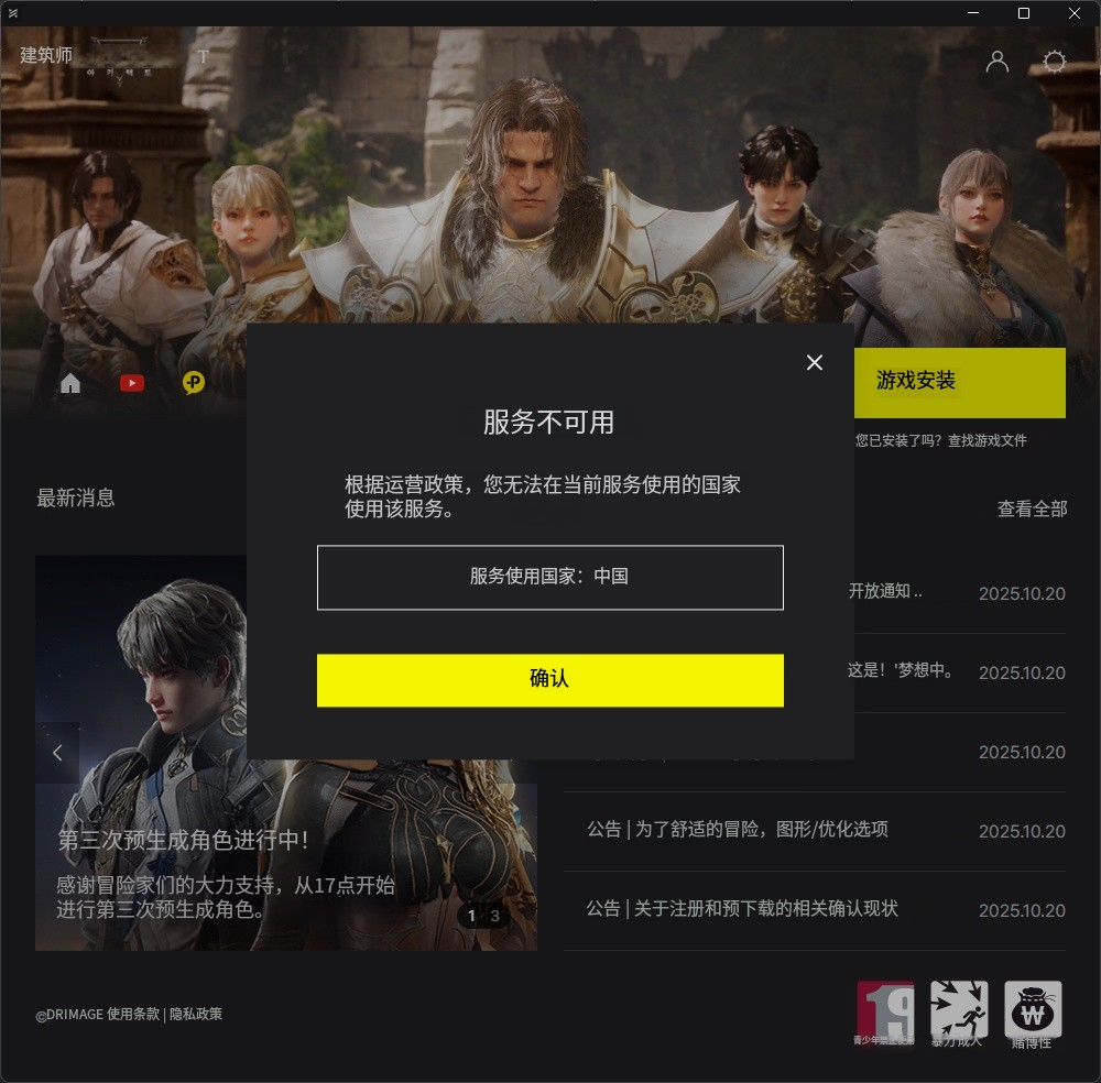 2.账号出现服务不可用,被锁区(原因1是自行注册的时候平台检测到中国IP,被判定为中国账号而被锁区,只有韩国账号才能进入游戏;原因2是没有对游戏进行加速)