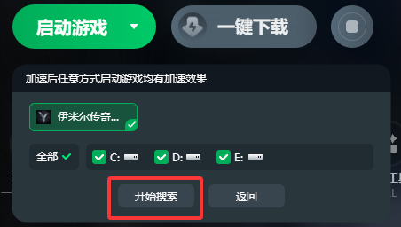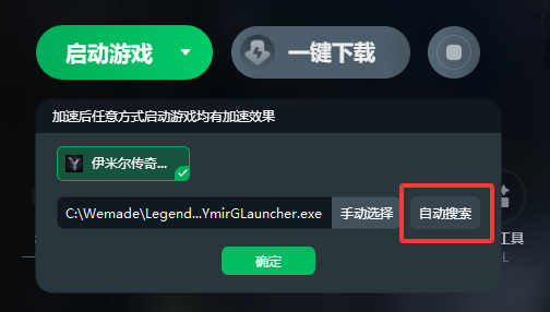 5.安装完成后,点击“自动搜索”或者手动选择游戏目录下的LegendOfYmirGLauncher.exe,确定游戏客户端路径