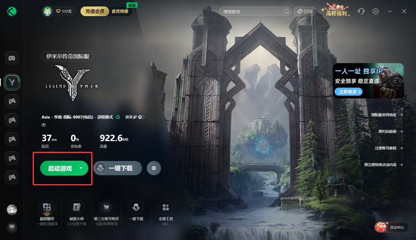 8.启动后会有游戏文件的下载和解压,等待下载完成之后点击“开始游戏”即可进入。