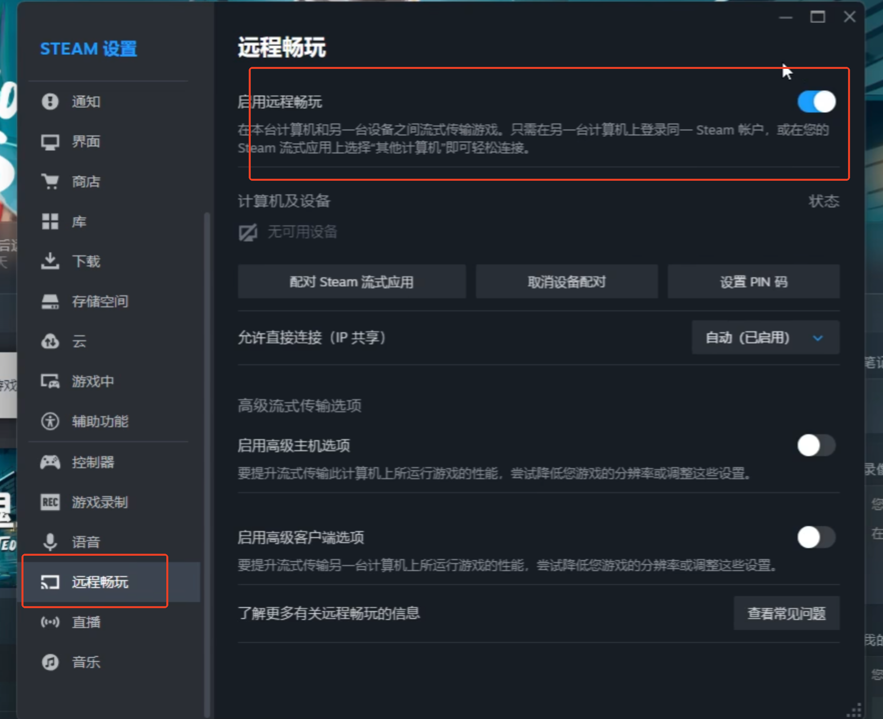 在里面有一个远程畅玩,双方都需要开启(只需要一个人有游戏即可)