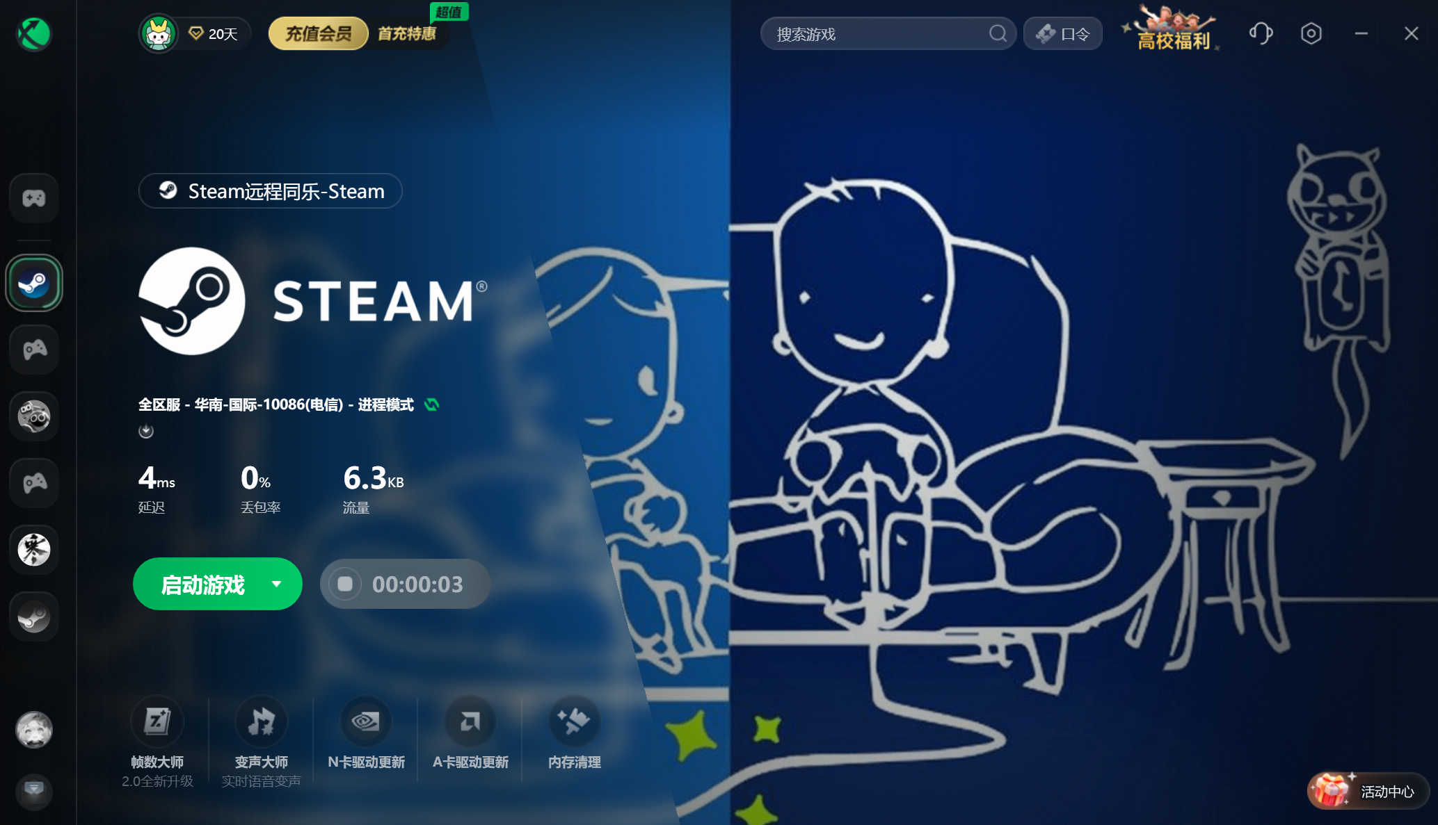 然后打开迅游加速器,搜索steam远程同乐进行加速