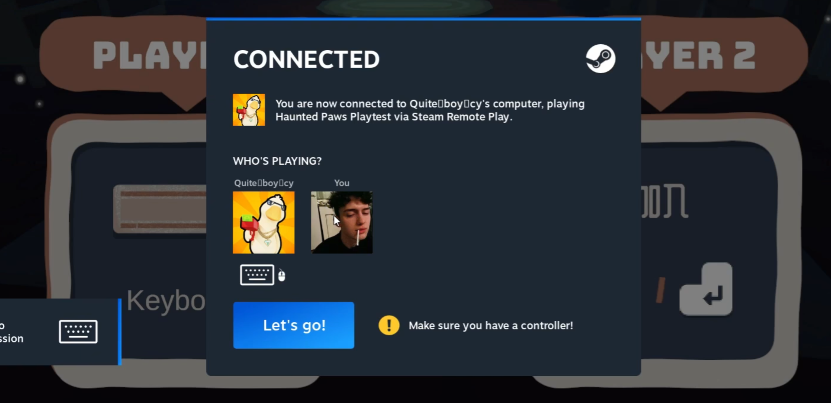 然后等另一方 接受后即可开始游戏,并且至少有一方是手柄才行