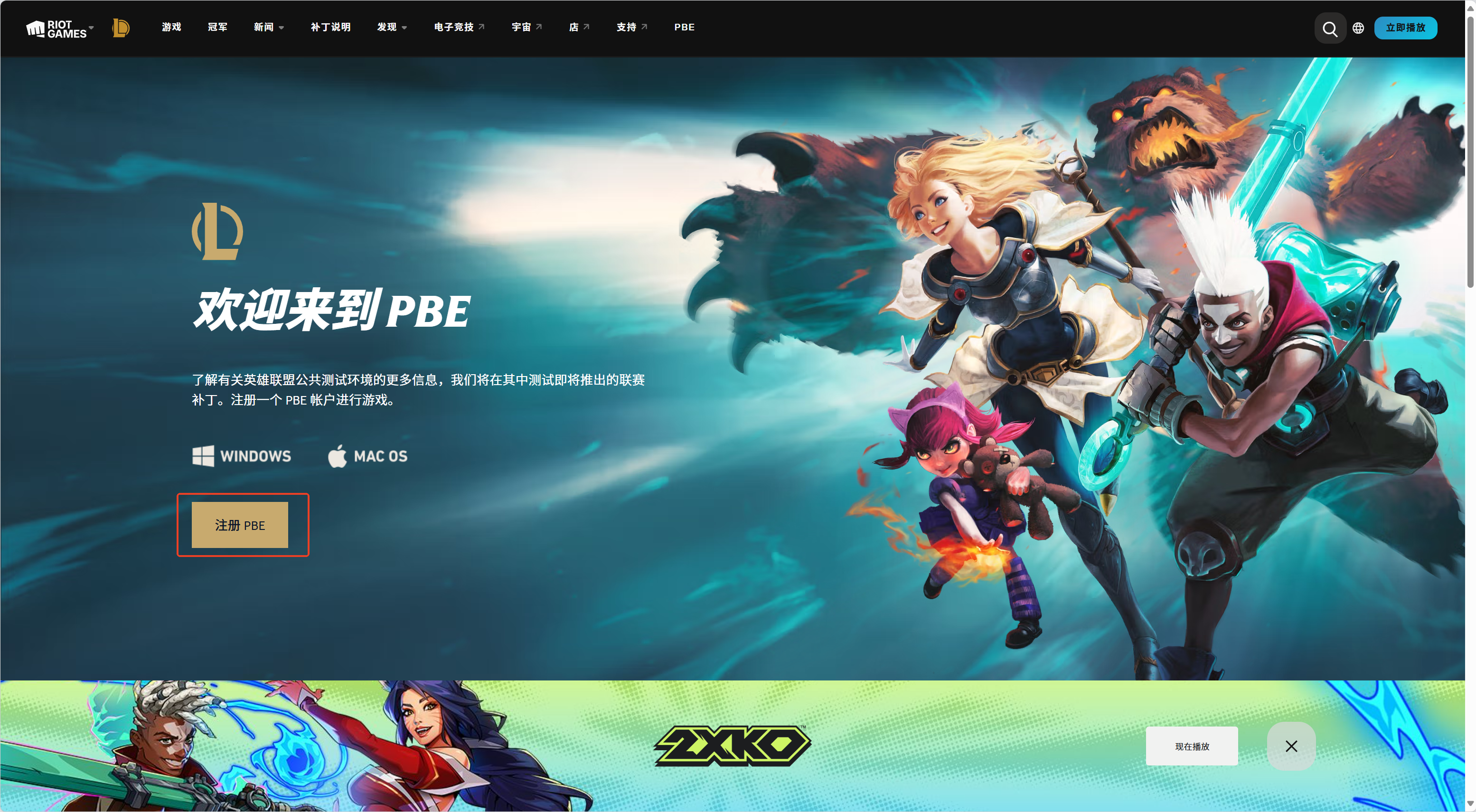然后 点击此处跳转pbe美测服官网,点击图中按钮进行注册