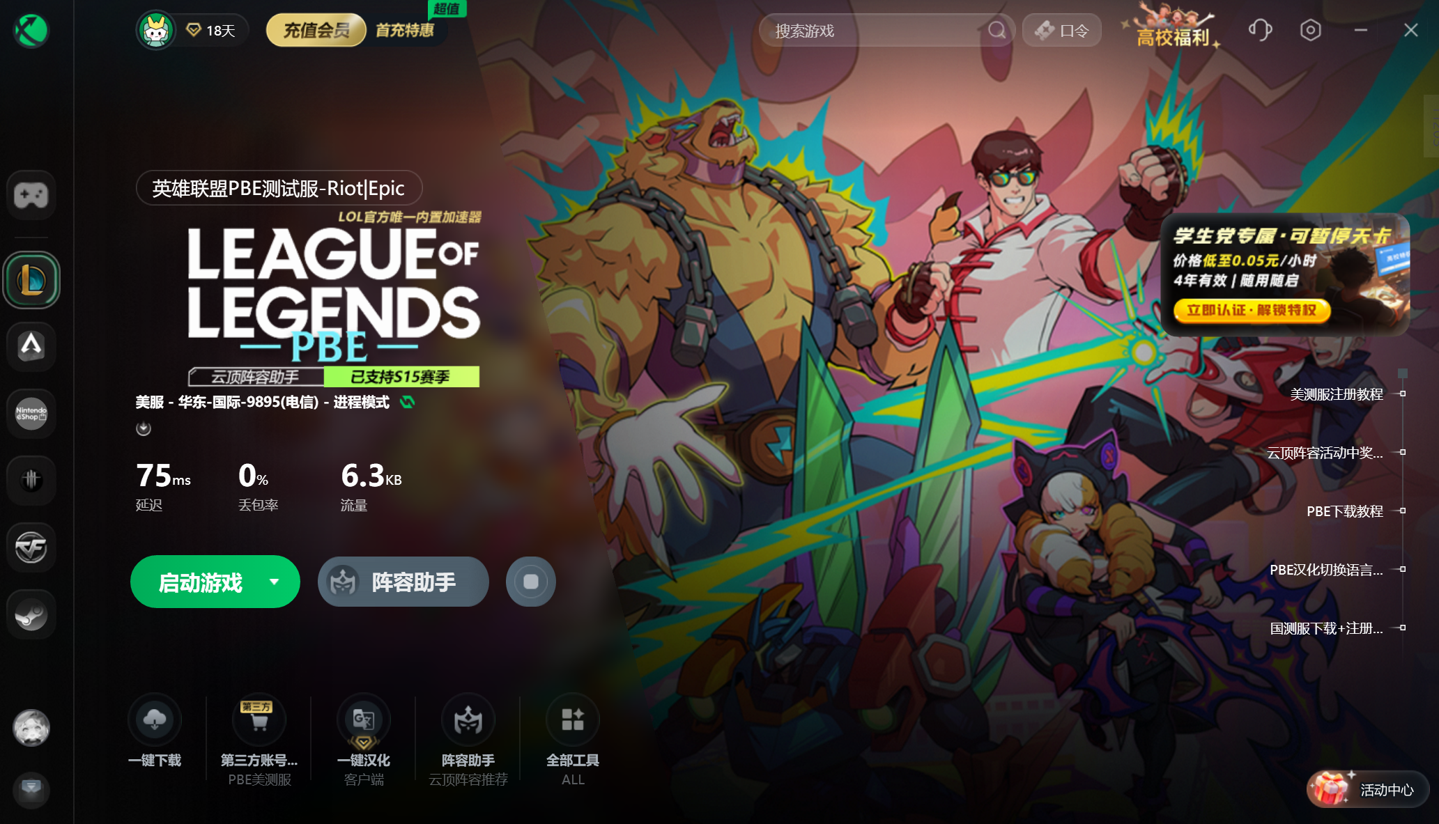 首先 使用迅游加速器 加速英雄联盟PBE测试服