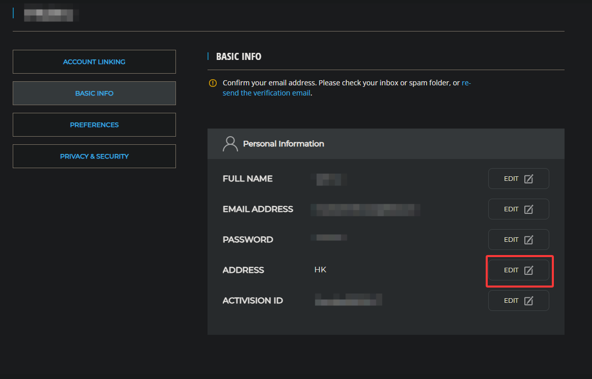 1.加速游戏,点击链接: https://profile.callofduty.com/cod/profile 登录后进入官网账户资料,点击“BASIC INFO”