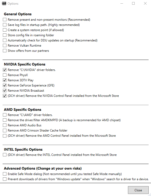 6. “NVidia 特定选项”部分中的复选框应保持原样:除 Remove PhysX 之外的所有复选框均突出显示。