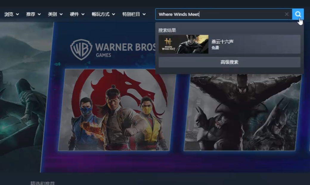 完成上面两种办法任意一种后,在steam中搜索where winds meet即可找到燕云十六声并加入心愿单了
