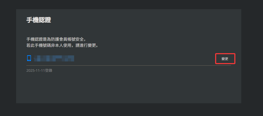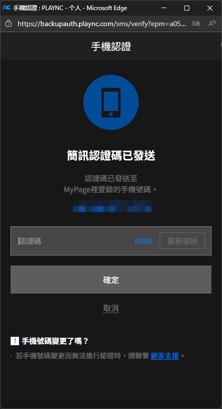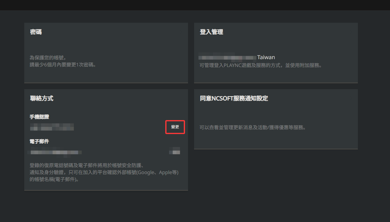 1.进入NC官网: https://id.plaync.com/myinfo ,登录后进入我的资讯-手机认证,点击“变更”