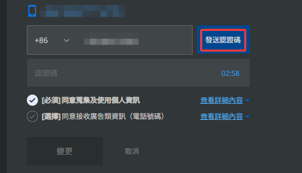 4.选择中国,输入自己的手机号,点击发送验证码,输入收到的验证码,点击变更即可完成换绑。