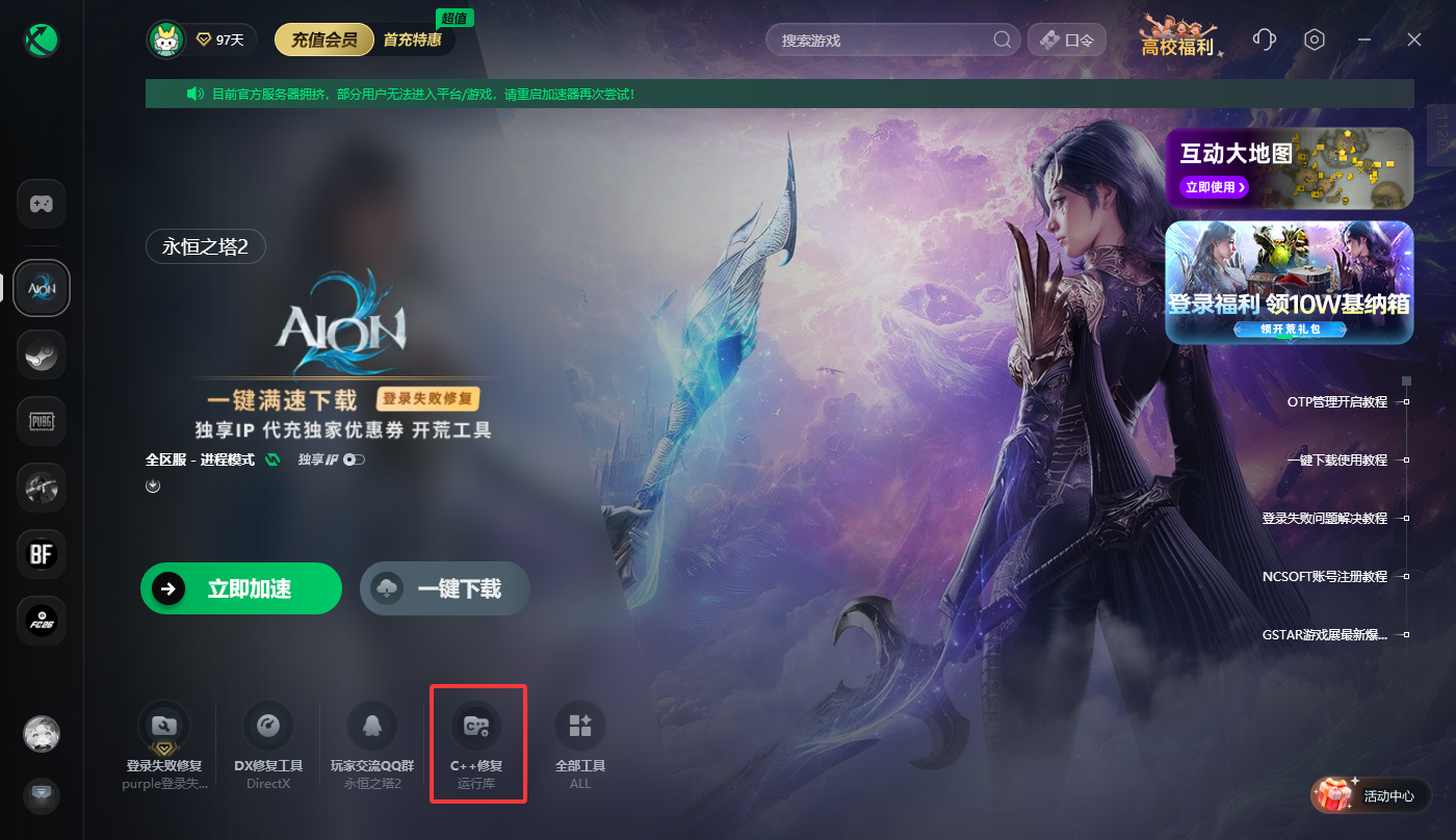 (2)使用C++修复工具修复系统运行库,再次尝试进入