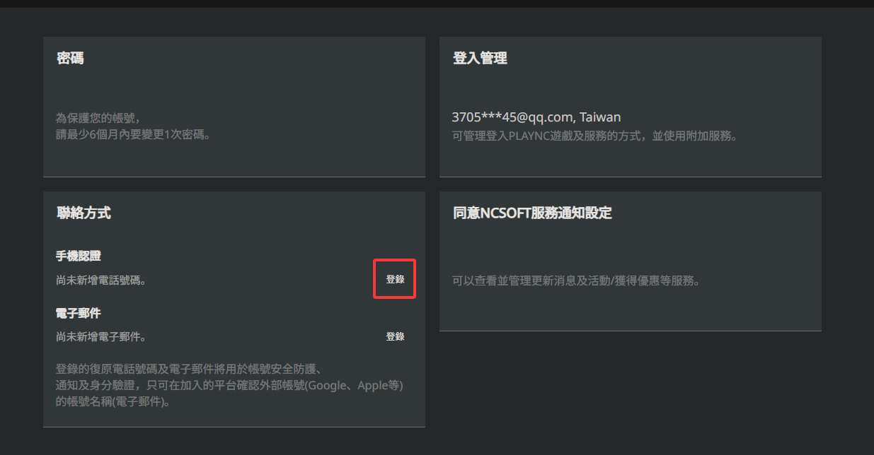 1.点击链接: https://id.plaync.com/myinfo ,登录到账户管理网站,点击图中登录