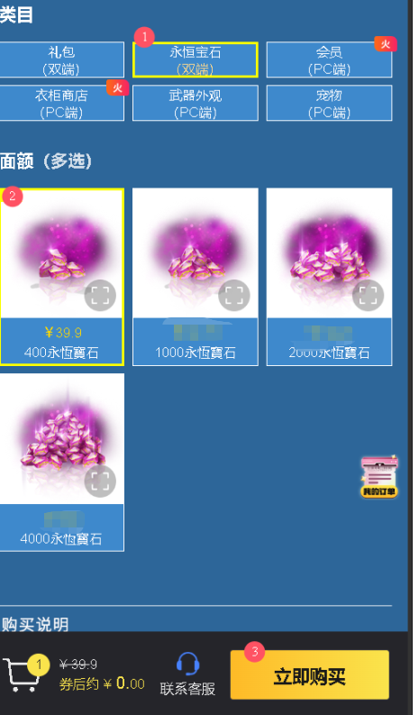 (4)选择事前购买的对应的商品品类、商品下单购买