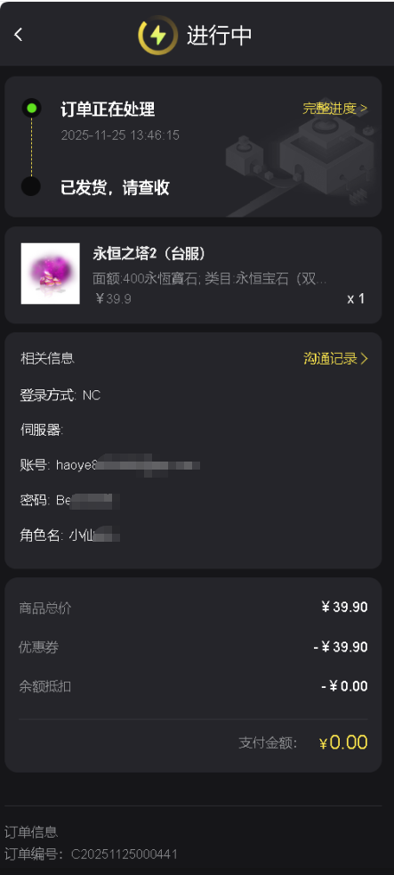 (5)输入登录方式以及账号密码(请放心输入, 该密码仅用于第三方充值)等待发货成功