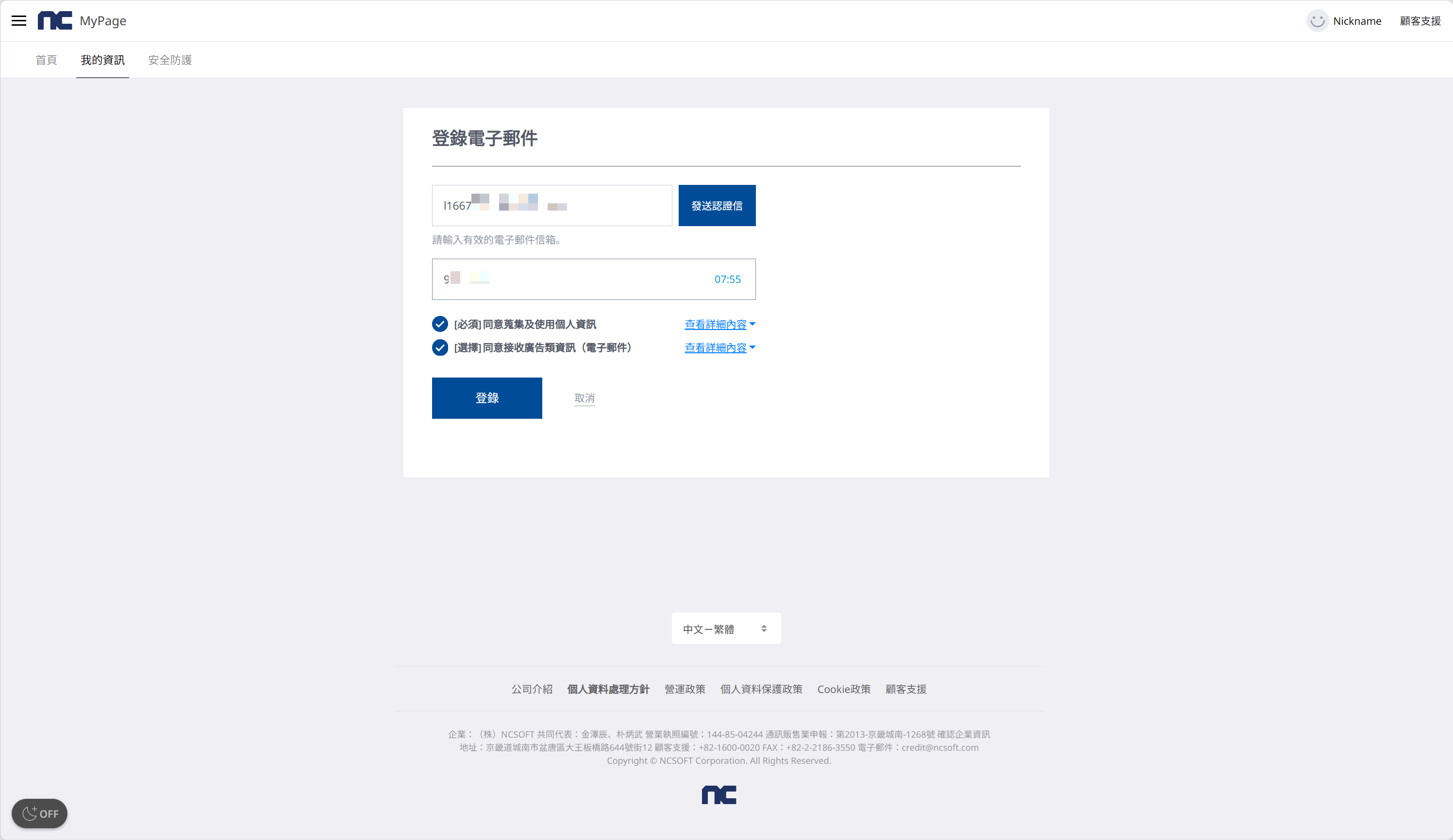 前往NC账号个人主页,然后点击我的资讯,再在电子邮件旁点击登录