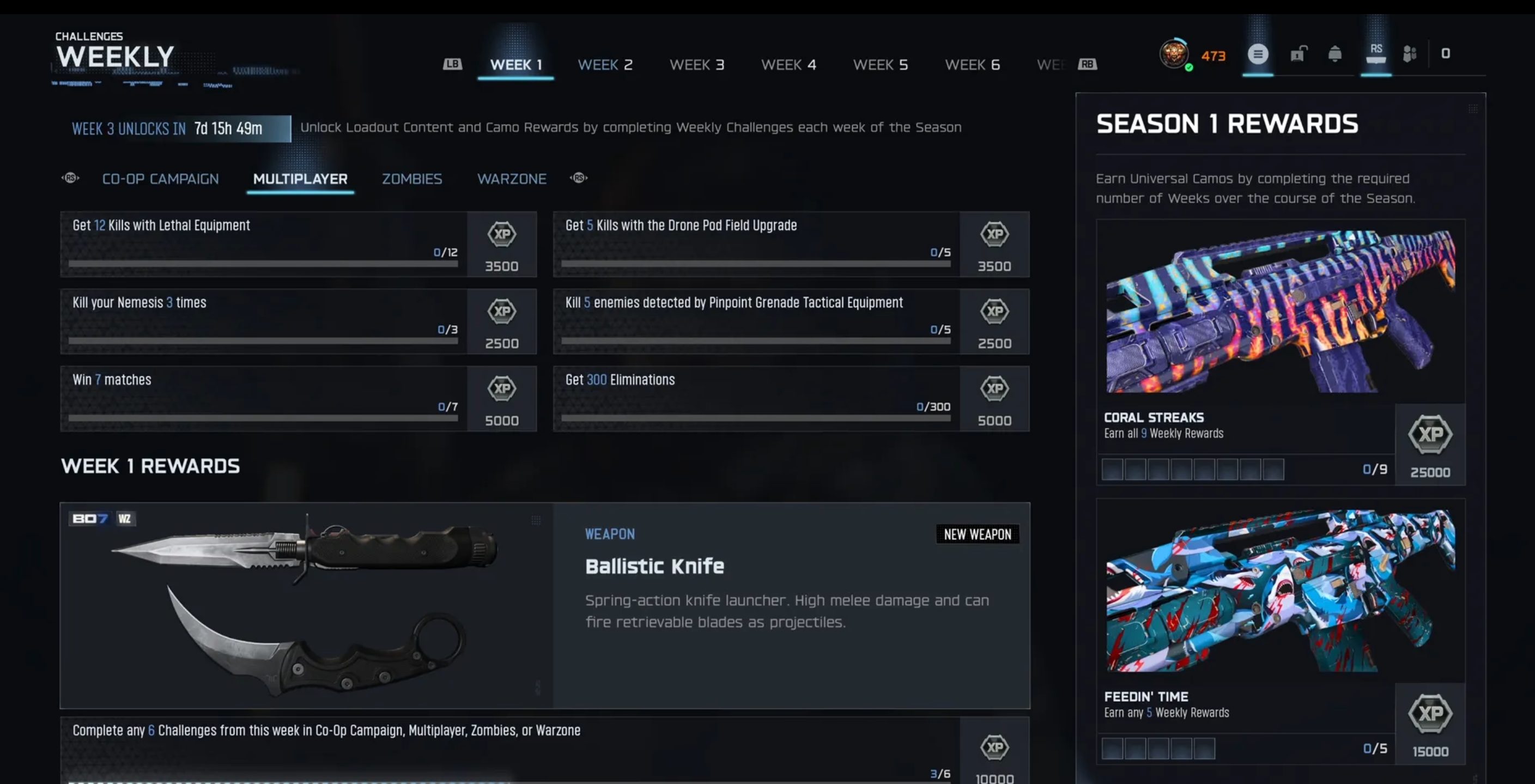 弹簧刀,通过第一周的每周挑战解锁,图二为巅峰迷彩