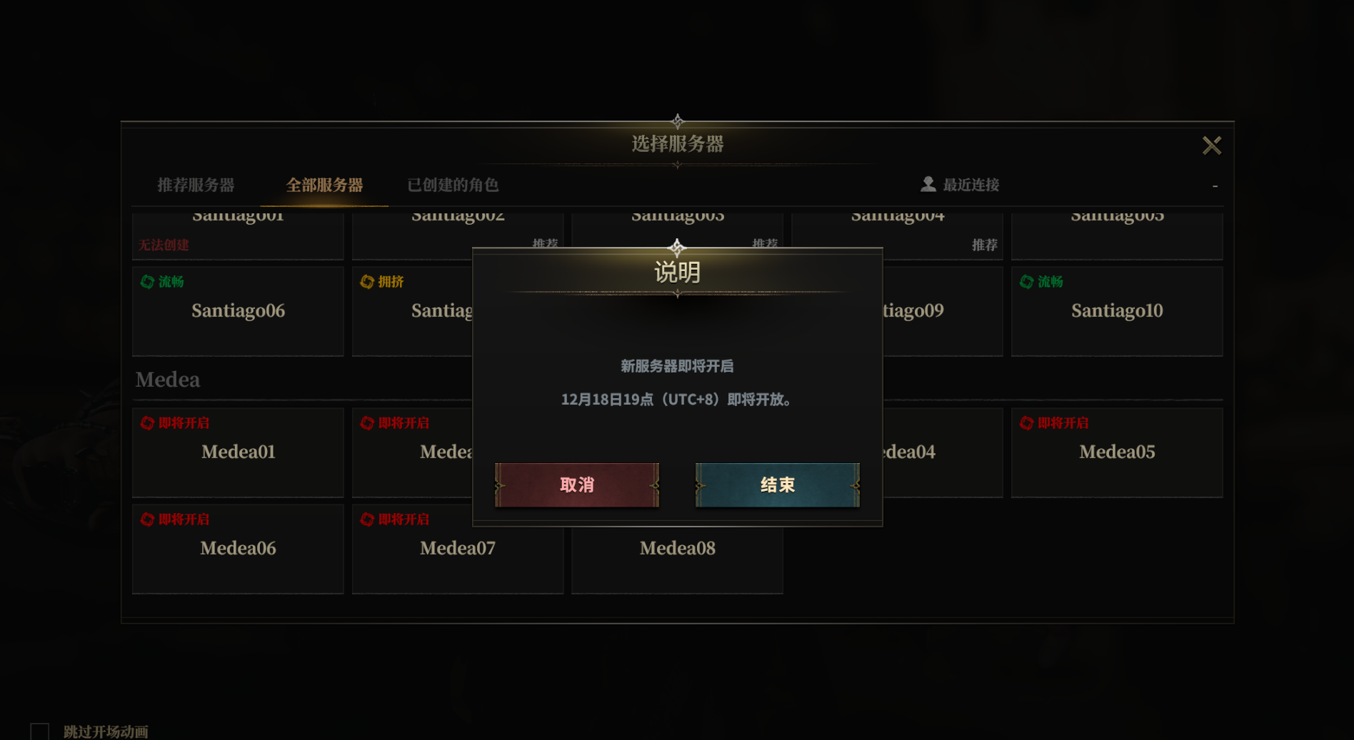 启动游戏后,在选择服务器界面下滑,找到Medea服务器