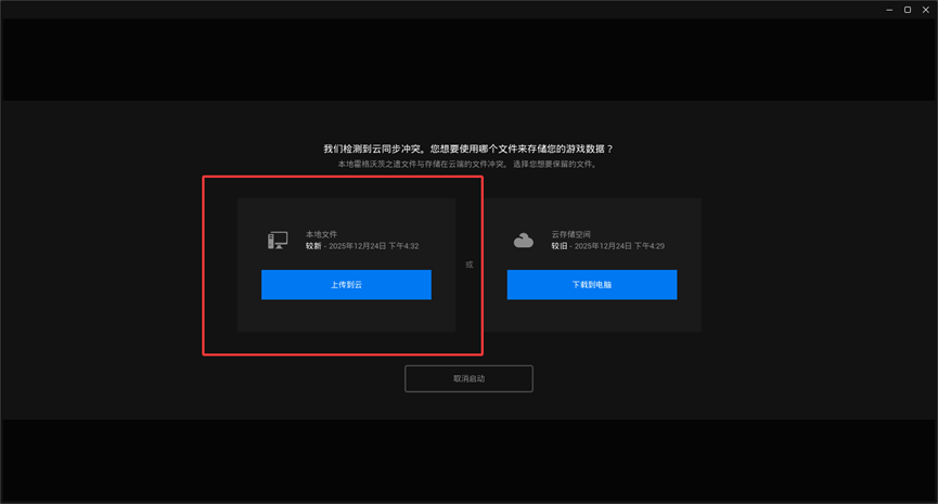 2.由于本工具属于本地文件替换,因此弹出steam或epic平台云存档冲突时,您应当选择将较新的本地存档上传到云存档。若您不想将本存档上传至云存档,请尝试禁用对应平台的云存档功能。