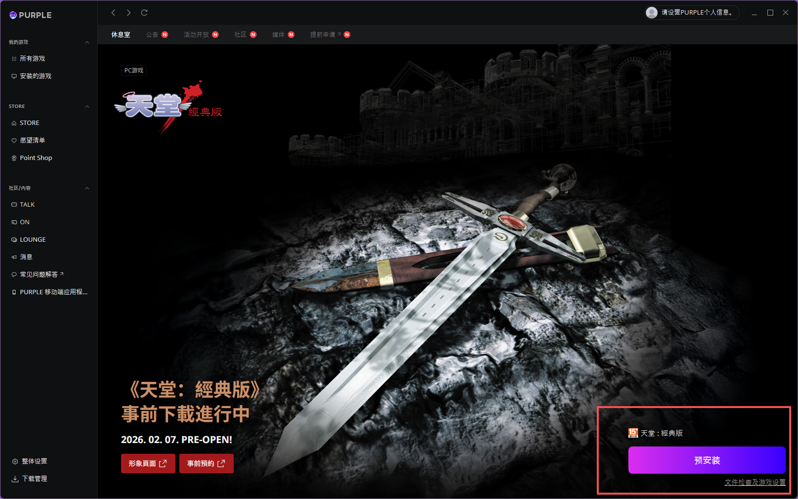 5.登录成功后,来到大厅,选择菜单内的STORE页面即可找到天堂经典版。