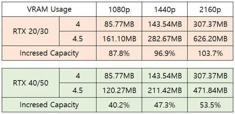 所以如果你显存只有8GB,有可能会爆显存,帧数反而可能下降。本质上4.5更偏向纹理优化,不完全是用来提帧的。
