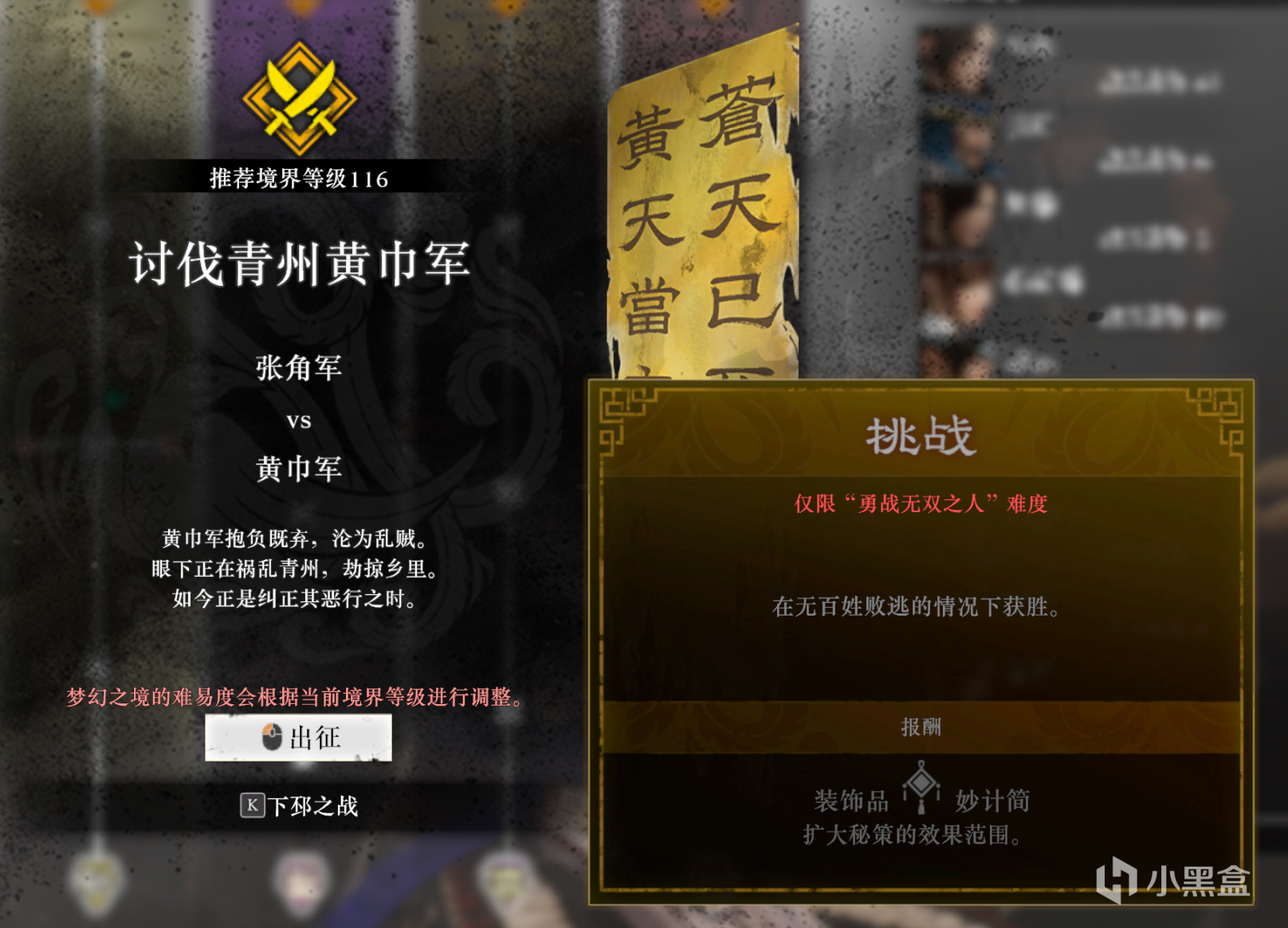 第一个装饰是张角线的“讨伐青州黄巾军”最高难度下的挑战。