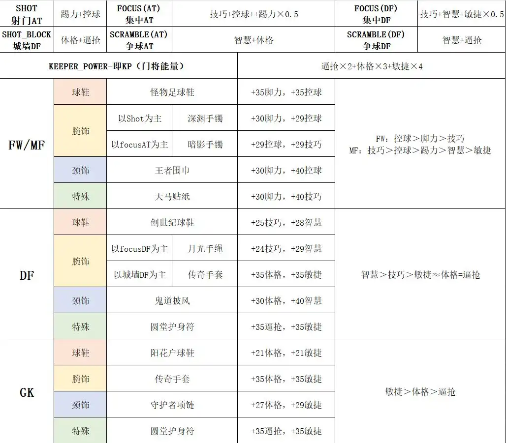 体格:代表身体强壮程度的能力值,能增加KP(门将能量)和城墙DF的数值,