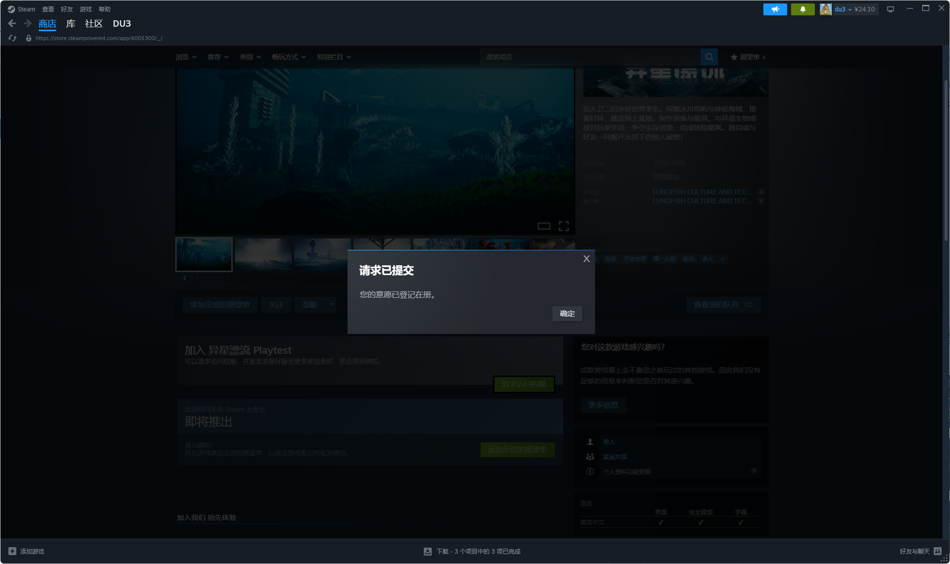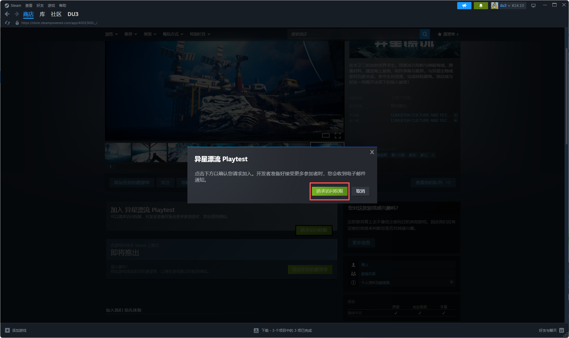 再次点击请求访问权限,等待开发者发送邮件,即可获取游戏资格