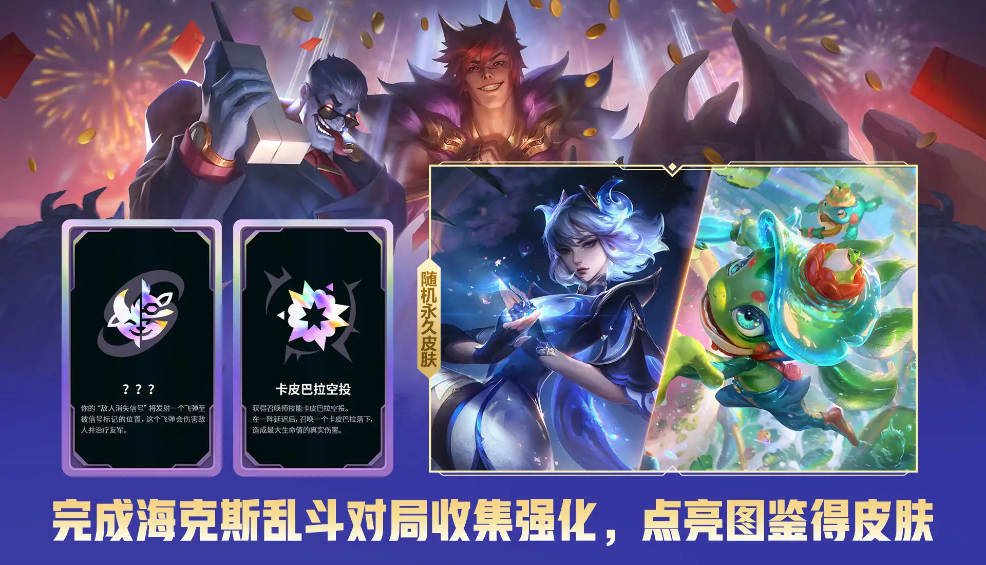 3.海克斯大乱斗版本更新、福利加码,收集强化即可领取一款随机皮肤