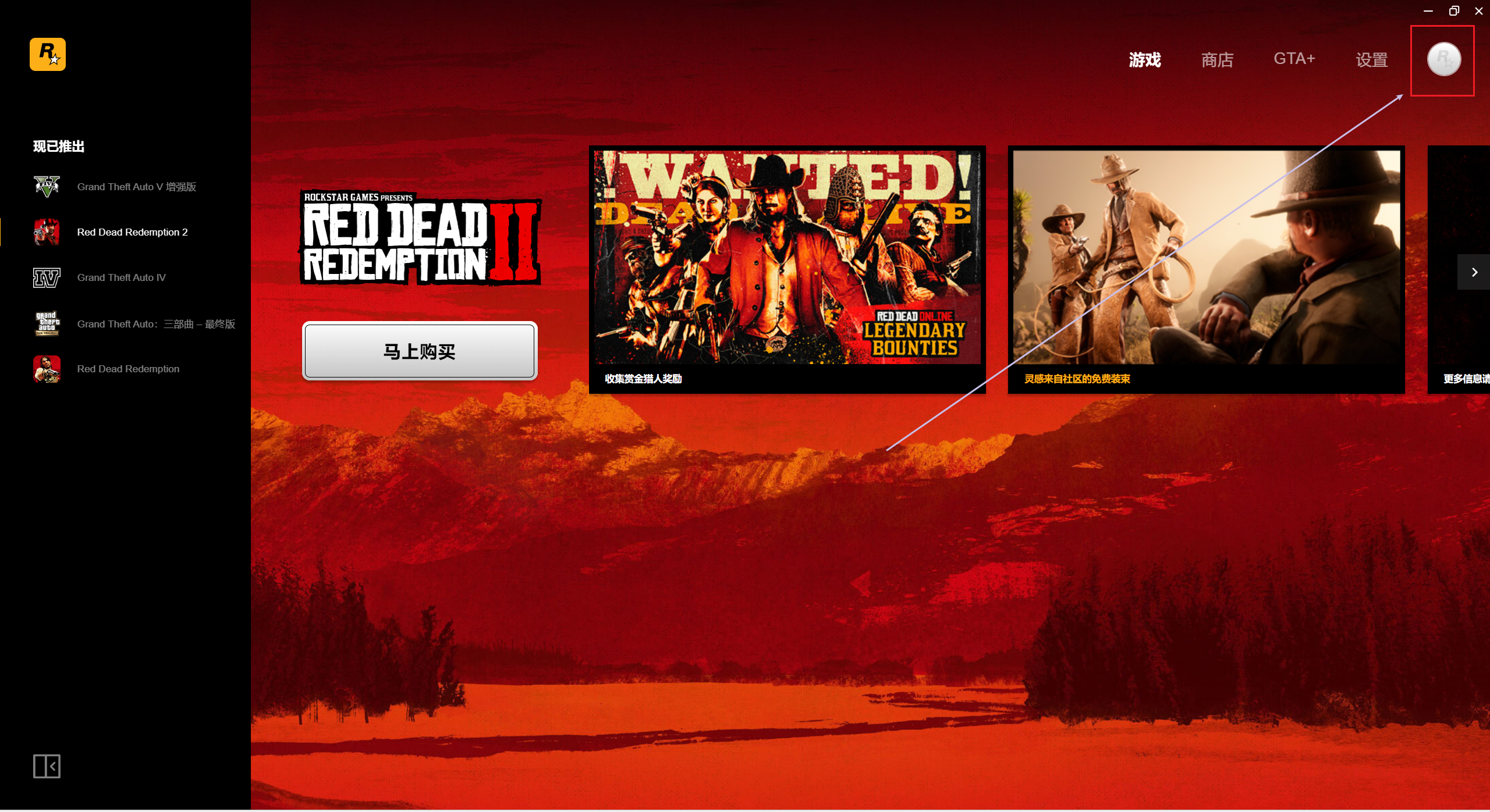 1.打开R星平台,点击右上角个人头像