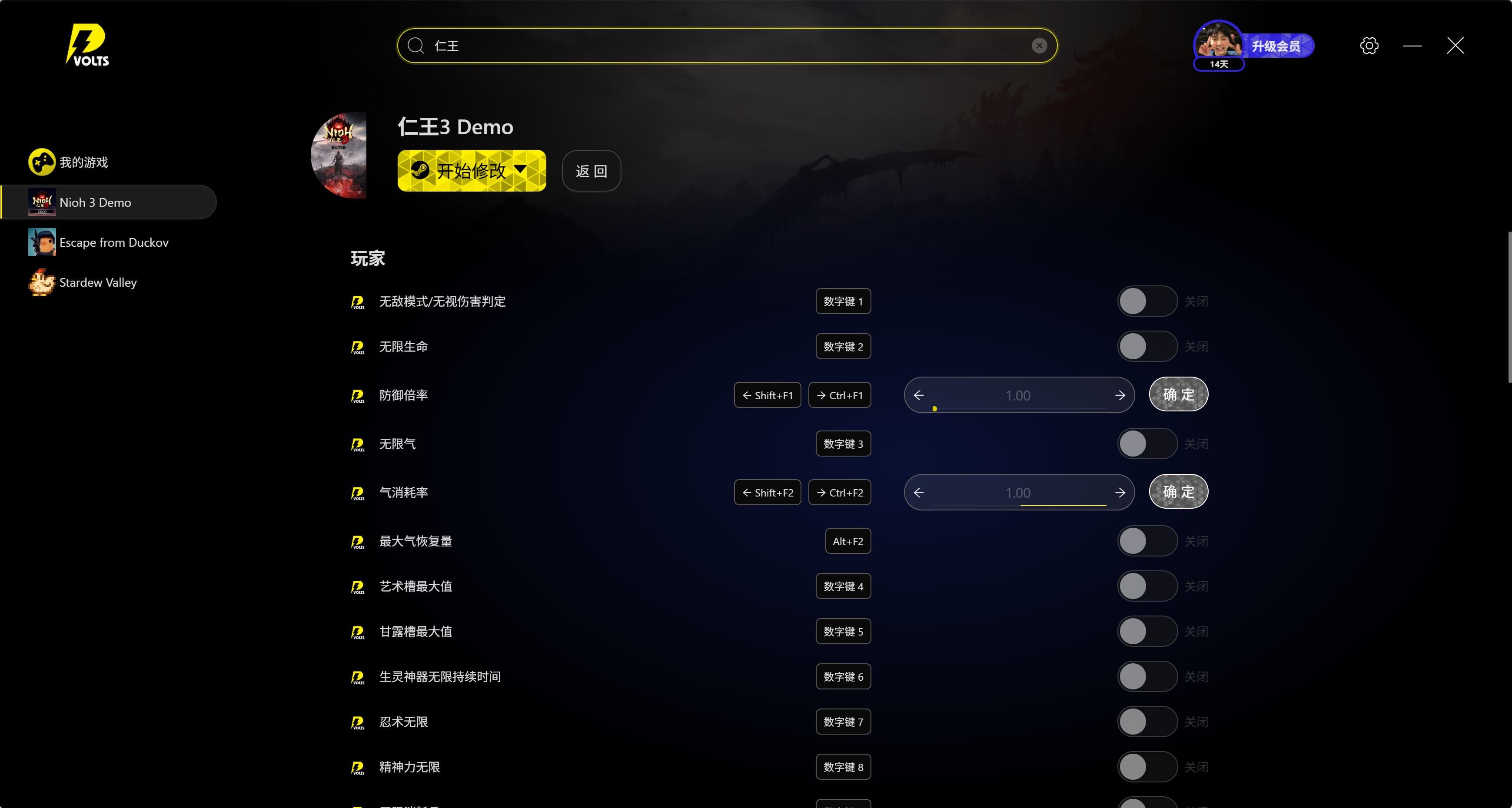 进入修改器界面后,您可以根据需要调整游戏参数或使用相应修改功能。免费会员期间所有功能均可使用。