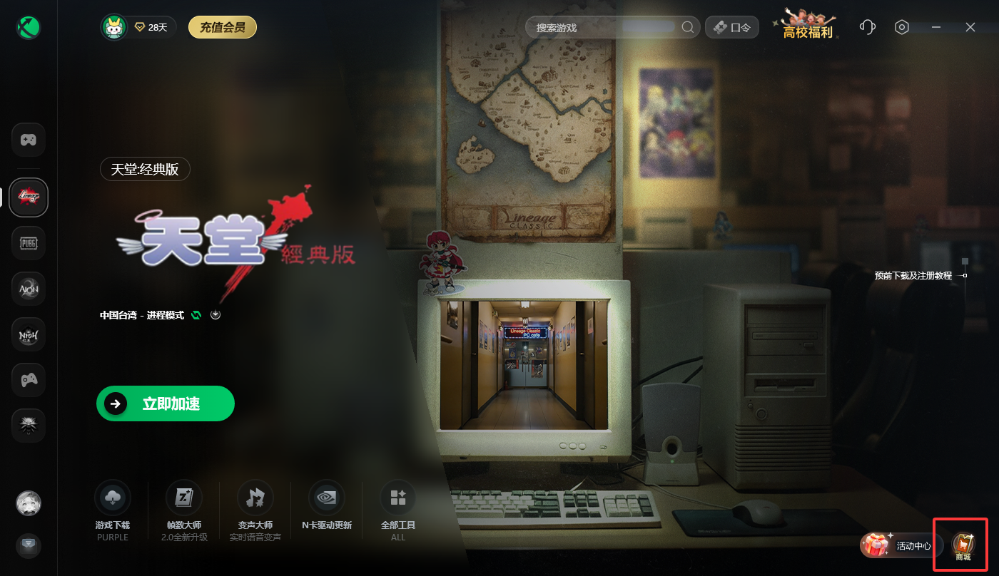 2.成功加速后点击界面右下角的“商城”按钮打开迅游商城