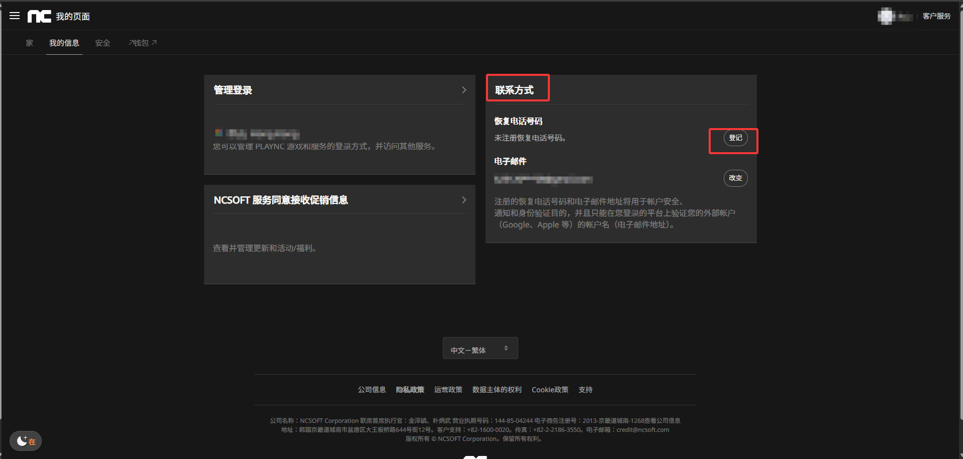 1.进入NC官网: https://id.plaync.com/myinfo ,登录后进入我的资讯-手机认证,点击“变更”