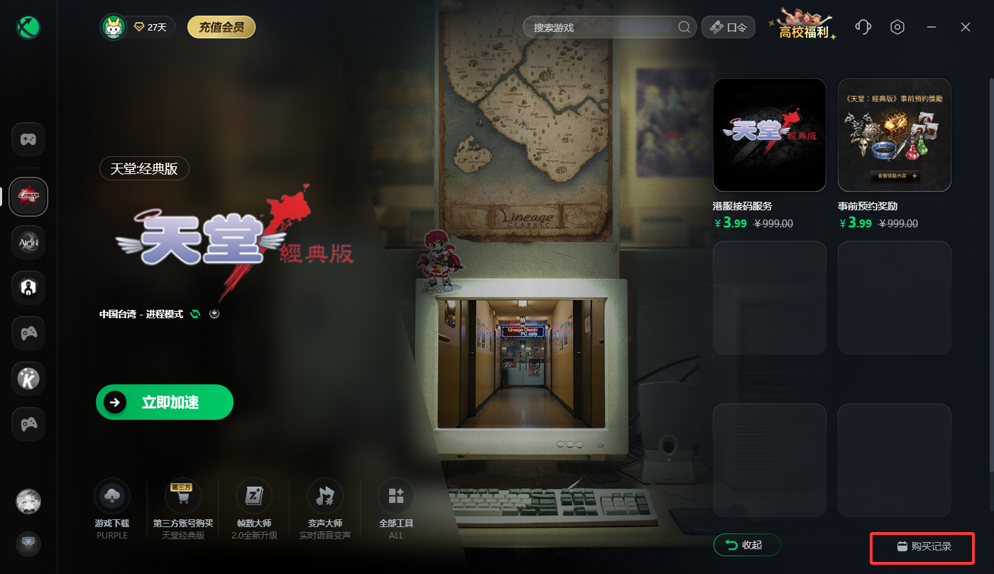 若您是在迅游端内购买的接码服务,只需返回”购买记录“中的页面找到接码平台链接,复制到浏览器打开即可。
