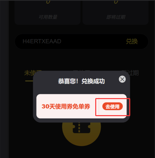 (3)成功输入兑换码后,在弹出的界面中点击去使用。