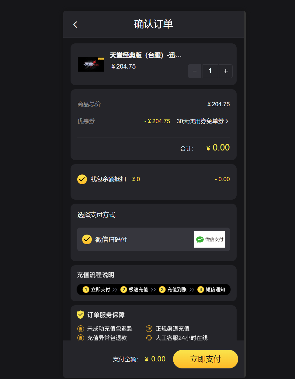 (5)选择“立即购买”后来到确认订单页面确认兑换券 /优惠券是否生效,确认无误后点击“立即支付”。