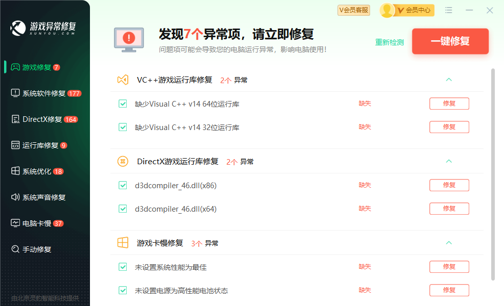 使用迅游指定游戏修复工具,一键解决