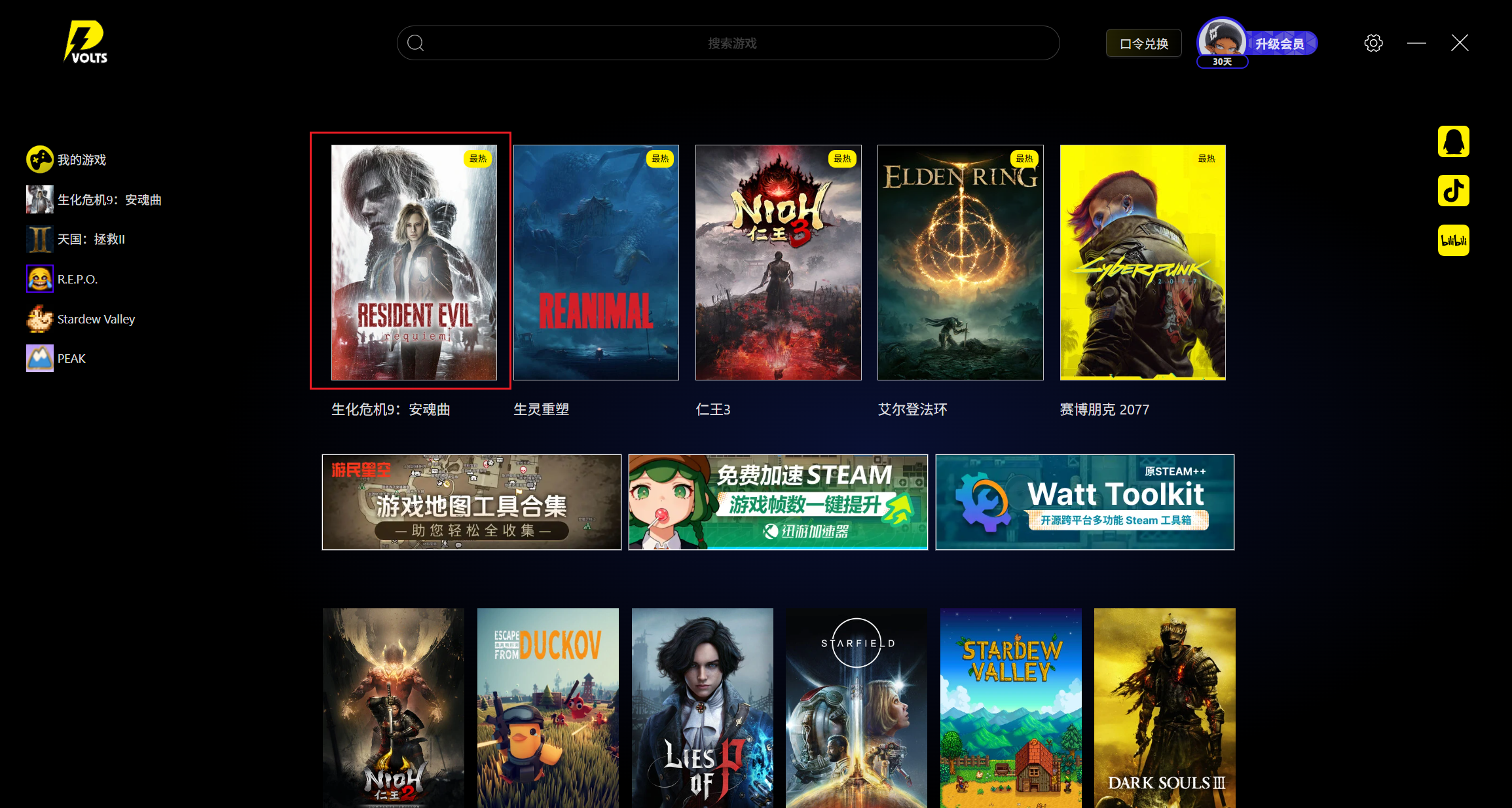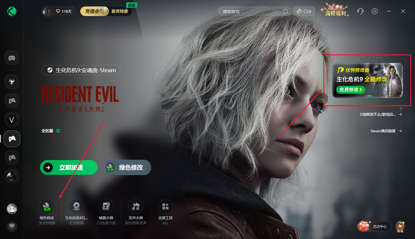 然后在Steam上启动生化危机9,再使用伏特加速器就可以正常使用了