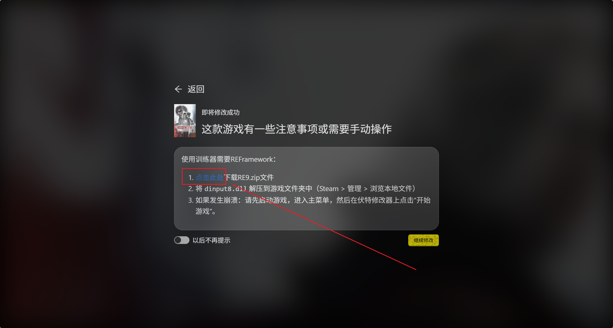 如果你第一次修改生化危机9,就点击此处下载