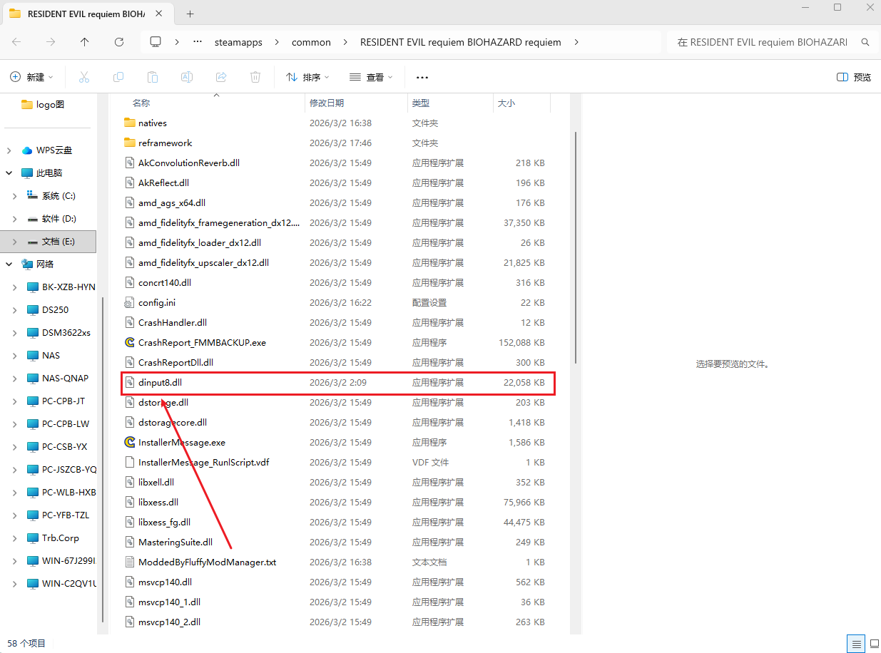 将刚刚放在桌面上的dinput8.dll文件拖进生化危机9的文件夹里