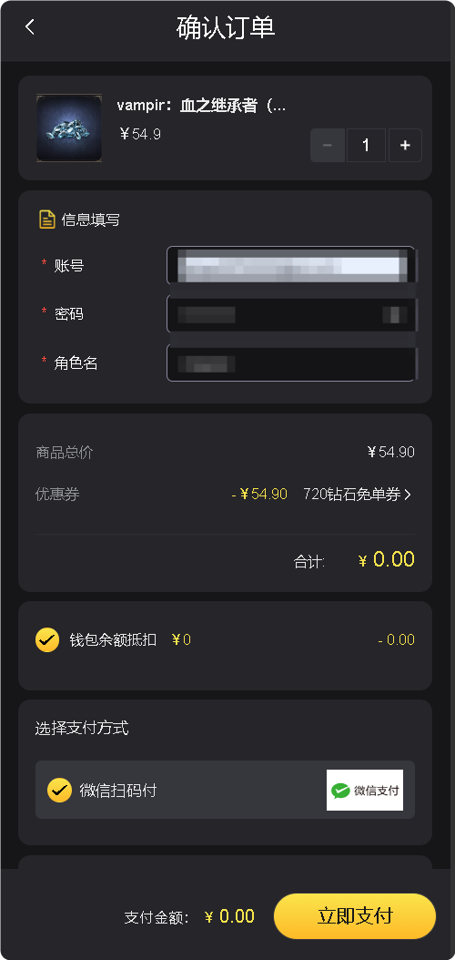 输入信息立即支付