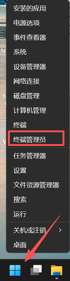 1.右键点击“开始”菜单,选择“Windows终端(管理员)”。