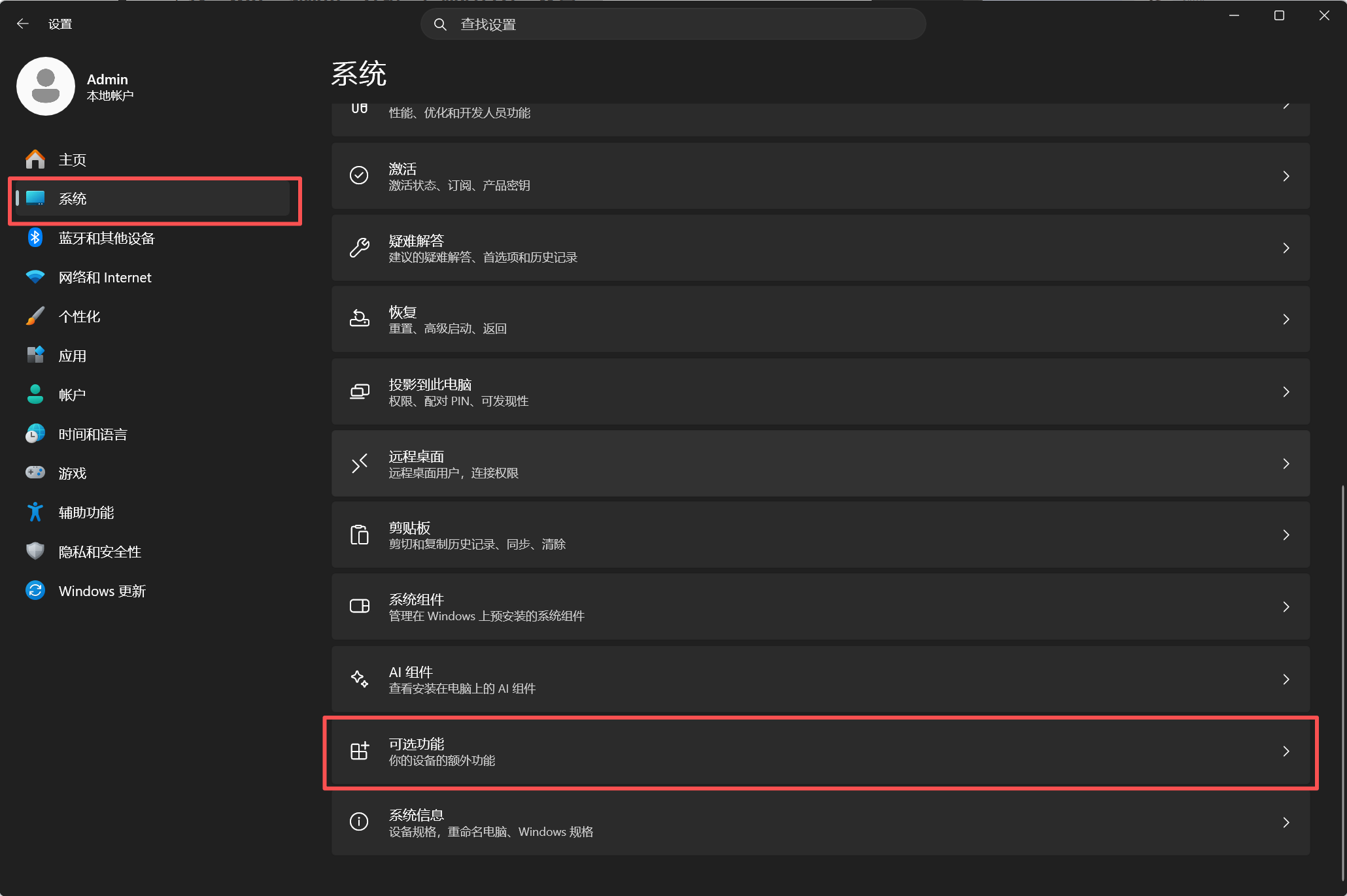 点击"添加可选功能"旁边的“查看功能”,搜索“wmic”,点击添加,等待下载完成后即可在Windows terminal(系统终端)中使用wmic功能。