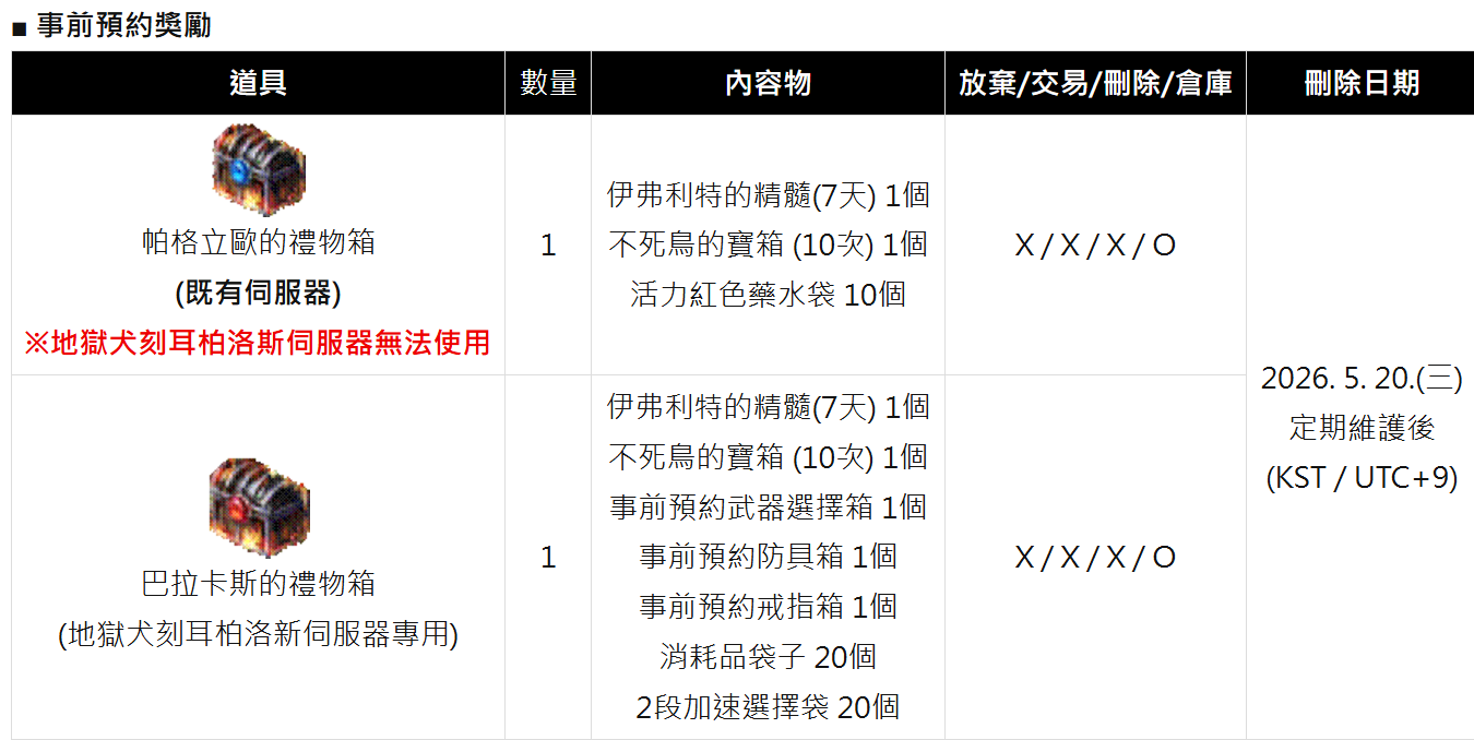 - 新伺服器新增日期 : 2026. 4. 22(三) 20:00 (KST / UTC+9)