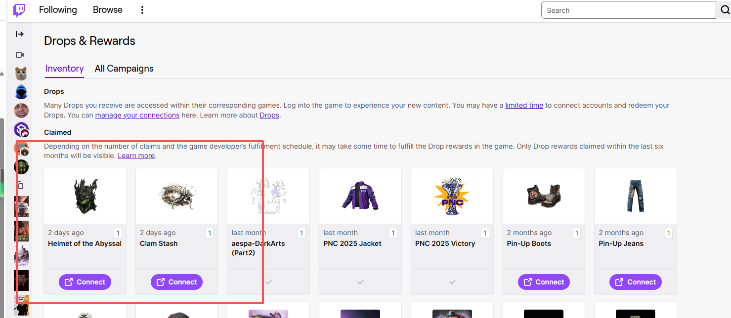 注:关联成功后, 其他奖品隐藏在Twitch背包的内奖品仍然可以正常到账。