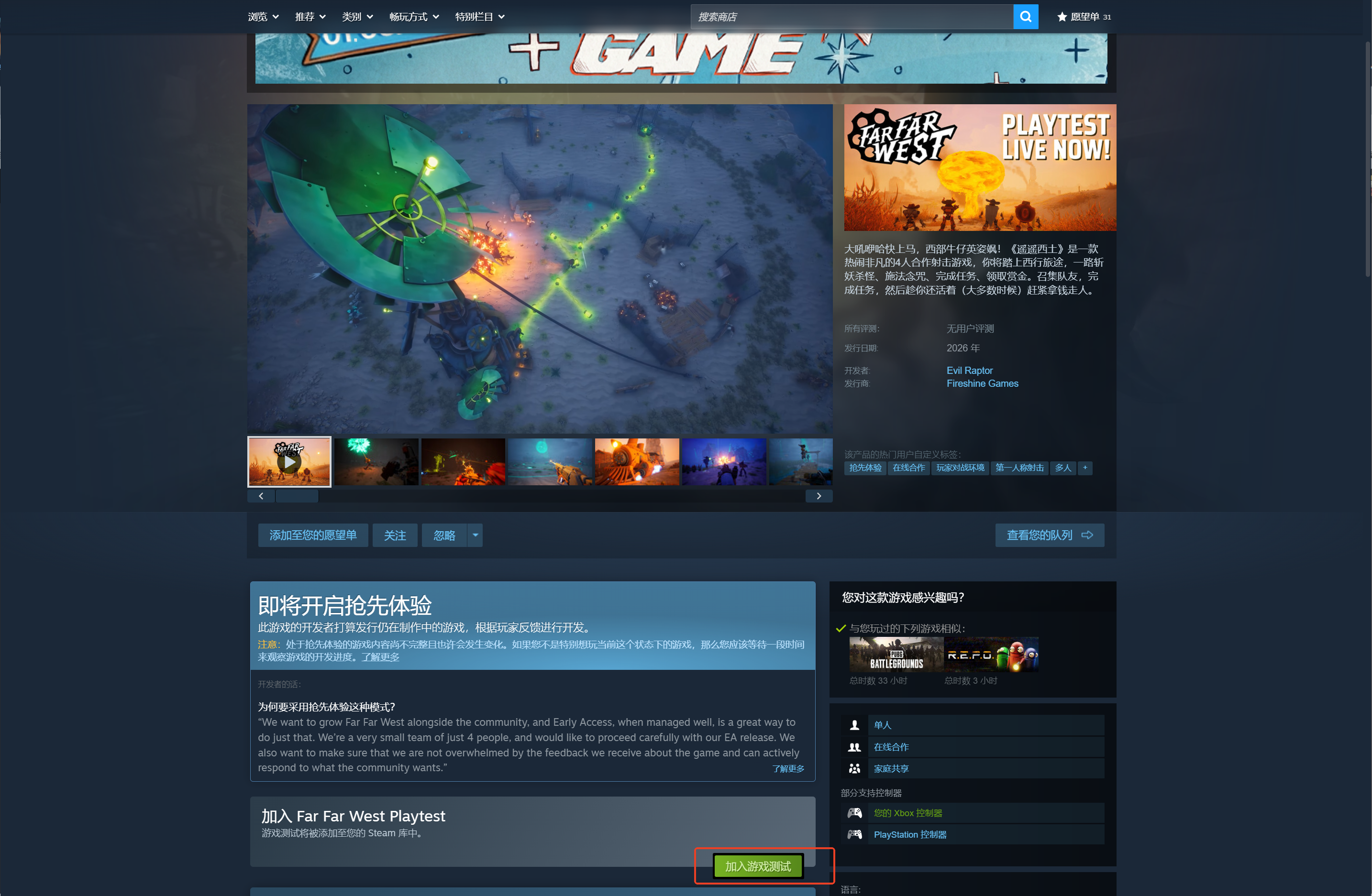 点击此处 前往游戏steam页面点击加入游戏测试,即可获取游戏资格点击马上开玩,即可下载游玩啦