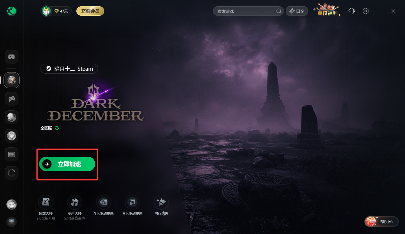 暗月十二已开服,该游戏是由恶月十二原班团队打造的续作,但目前游戏锁国区并且服务器延迟很高,很多人出现了如下图所示的无法连接服务器、与服务器断开的报错游戏官方的推荐解决办法为:尝试重新安装游戏以解决问题目前韩服日服延迟都很高,并且因为游戏锁区,改钱包地区的方法已经不管用了,接下来就为大家带来解决以上这些问题的方法首先是服务器延迟很高如何优化的问题,我们可以去百度搜索迅游下载,安装打开后搜索暗月十二并加速,此时就可以看到延迟大幅降低了然后是锁区下载问题,目前想要在steam游玩得先准备一个外区账号,可以在迅游活动领取一个美区账号之后用拿到的全新steam初始账号登录右上角找到【账户明细】在【联系信息】中找到【更改我的电子邮箱地址】和【添加手机号码】,修改为你自己的在下方的【账户安全】中点击【管理steam令牌】验证邮箱此处需要进入验证邮箱登录网站复制这个链接到浏览器,然后登录邮箱:mail.andast.vip输入邮箱和密码,进入邮箱内完成邮箱登录后,进行以下操作进入你需要换绑的邮箱收取验证码使用收到的验证码在steam端验证即可完成验证后,您可在商城界面的搜索框中搜索“暗月十二"或“Dark December”即可找到对应的游戏界面