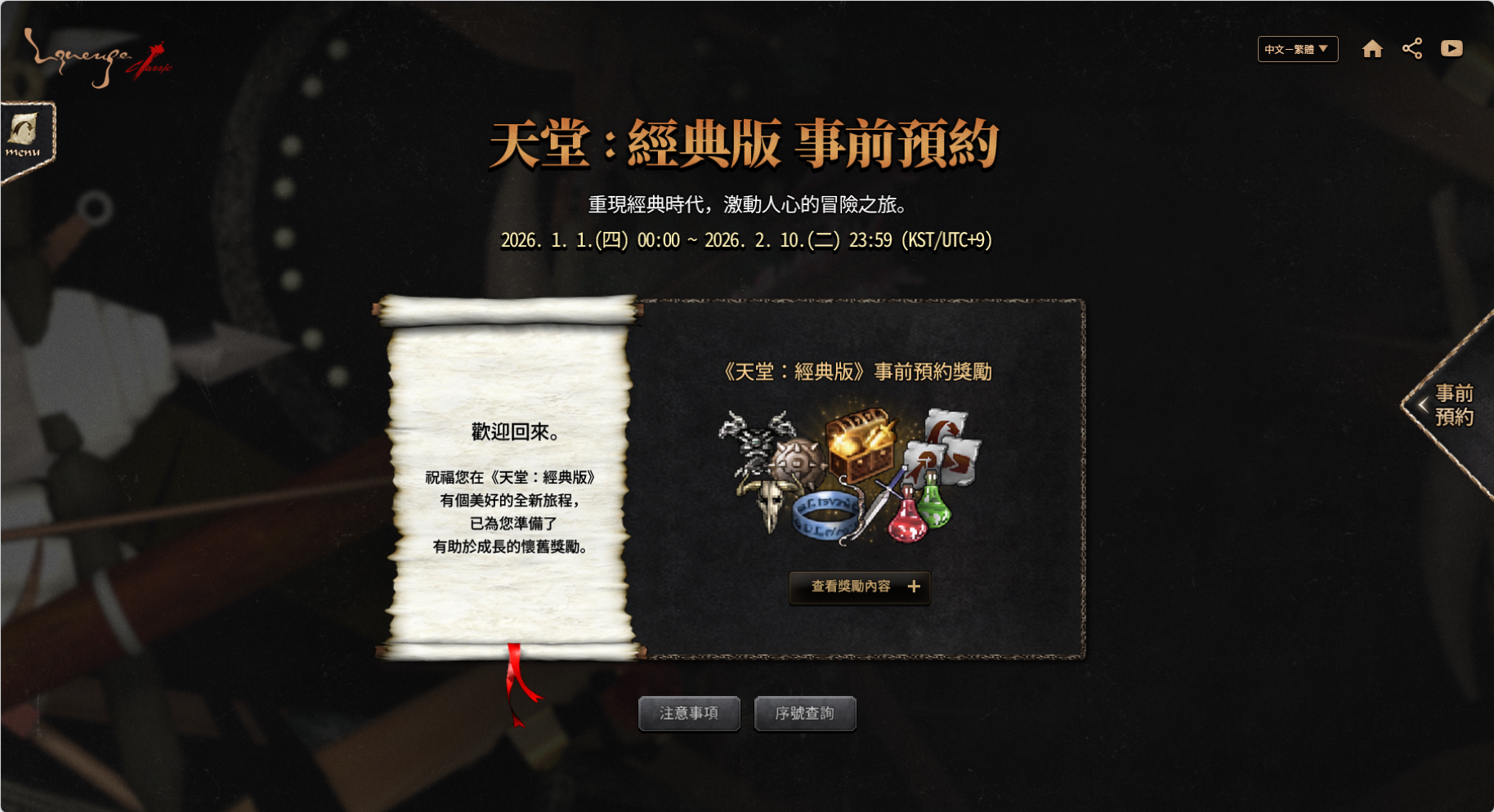 点击前往:台服官网现已开启事前预约1. 首先打开迅游客户端点击进行加速。2.在成功进行加速后,您可通过页面中的快捷工具直接下载purple平台。或请点此链接下载purple平台并安装。3.安装并打开purple平台后您可见如下页面,若您有诸如Google,Steam或X等其他账号可尝试直接登录。若您没有账号,请点击“注册”按钮,来到注册页面。您可通过多种途径注册账号,本文将演示推荐的邮箱注册流程。Location请选择台湾地区,同时请确保您填写的出生日期“date of birth”计算后已满十八岁。(如2000-01-01)同时勾选两个协议同意项。来到enter info页面,分别在第一行填入您的邮箱地址,在填写完毕后点击旁边的按钮,系统会向您的邮箱发送确认邮件,请及时前往您的邮箱界面确认。在下方的验证码框内填入您收到的验证码并验证。验证成功后您就可在“password”框内输入您的密码,并在下一个框内再次输入密码确认密码是否正确。(请注意:您的密码应当长度为8到16个字符,且密码包含大写字母、小写字母、数字和特殊字符类别。)完成上述步骤后,您就注册成功了。4.返回purple端内,输入您的邮箱密码,即可登录。5.登录成功后,来到大厅,选择菜单内的STORE页面即可找到天堂经典版。进入页面后,选择“事前安装”即可下载安装游戏。